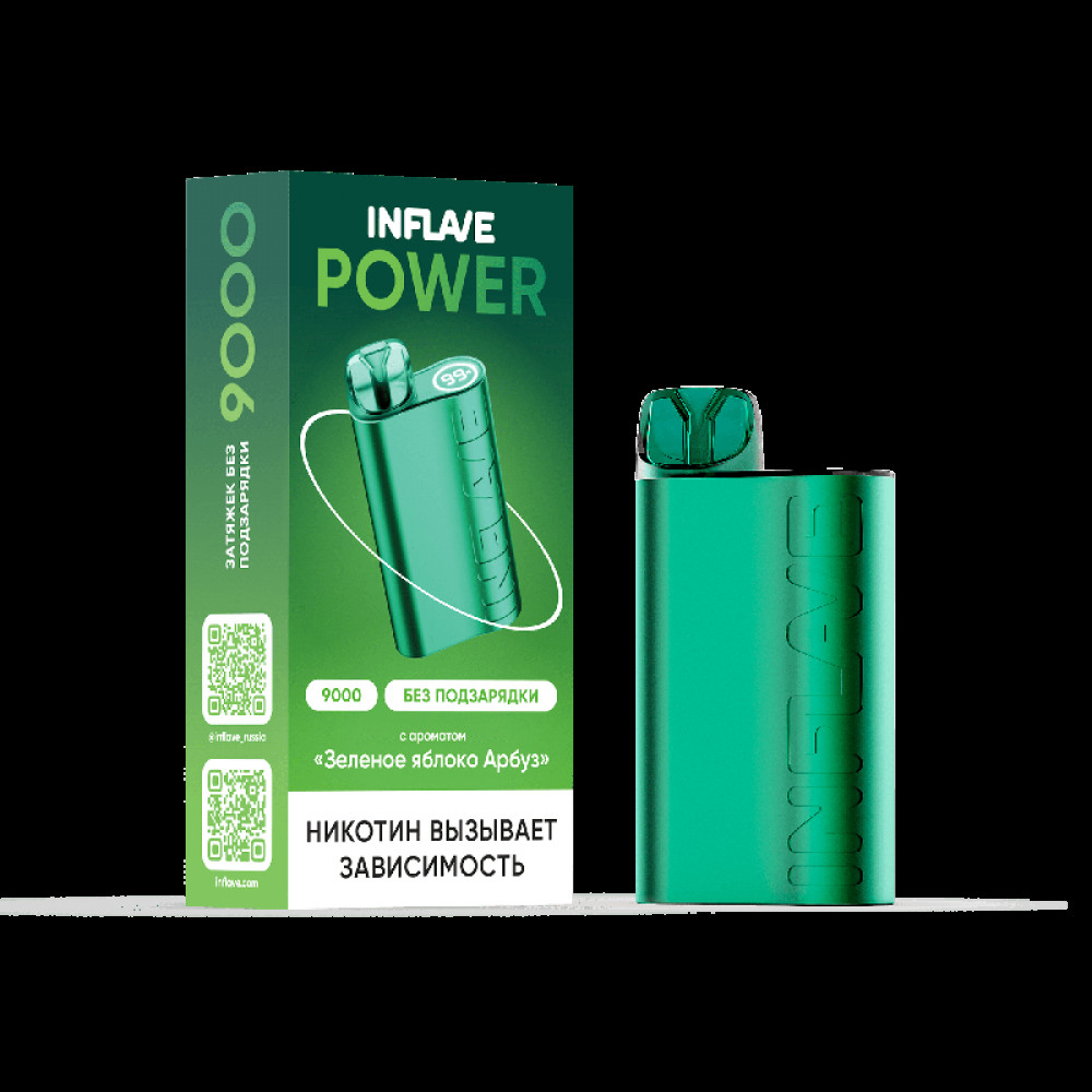 Электронная сигарета INFLAVE POWER 9000 затяжек Зеленое Яблоко Арбуз - купить в Нижнем Новгороде